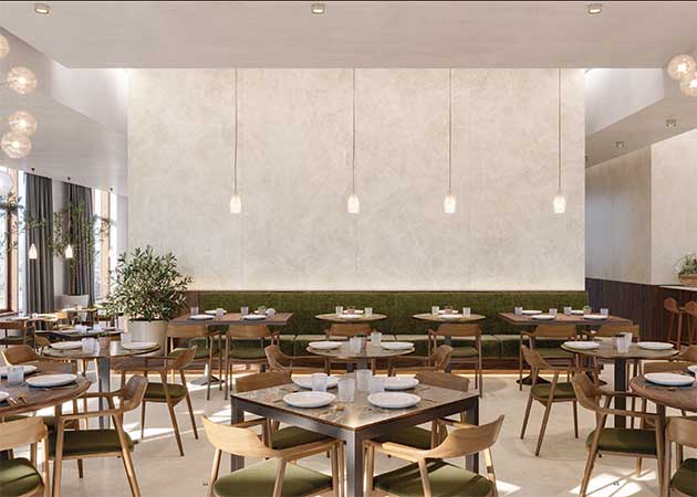 Lastre di grande formato Urbatek per i rivestimenti di un ristorante |