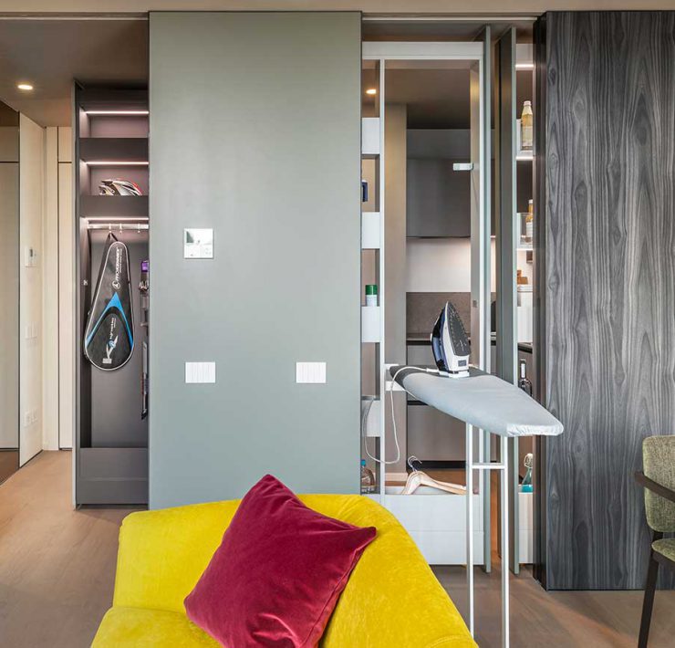 Infine, per ovviare alle difficoltà di applicazione delle soluzioni scorrevoli in prossimità di prese elettriche e tubature, Linear è ora tra le opzioni di Magic Box, la serie di controtelai predisposti per le utenze elettriche e/o idriche ideati e brevettati da Protek.