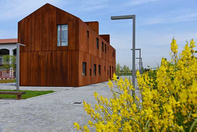 Cascina Merlata (nella foto ©Moreno Maggi un´estensione del corpo originario) è luogo di ritrovo della comunità del quartiere e centro di servizi, ristorazione e eventi pubblici) |