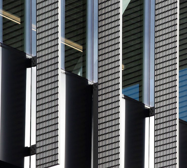 Il sistema di facciata prefabbricata dell’edificio ha incrementato la velocità del programma di costruzione e trasformato le possibilità architettoniche in tutto l’edificio. All’interno, i pannelli integrati in calcestruzzo sono lasciati a vista per diventare la superficie finita in molti degli spazi di lavoro dell’edificio. All’esterno, il disegno ondulato del mattone, reso possibile grazie a casseforme a controllo numerico, crea ombre che animano la facciata per tutto il giorno in un gioco dinamico di luce unico nel paesaggio del luogo.