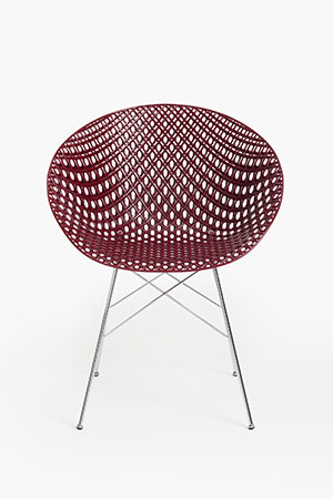 SMATRIK, produzione Kartell, design Tokujin Yoshioka Motivazione: uno stampo appositamente studiato per una particolare tecnologia a iniezione permette di creare una rete tridimensionale sovrapposta e incrociata, in cui gli strati di policarbonato trasparente o colorato in massa creano una struttura monostampata simile a una rete metallica. Con un lungo processo di studio e di progettazione la difficoltà di riempimento dello stampo di questa struttura, unica nel suo genere, è stata superata realizzando, per la prima volta in materiale plastico e a livello industriale, un prodotto dalle caratteristiche uniche per design, resistenza, durabilità, flessibilità e tecnologia produttiva. |