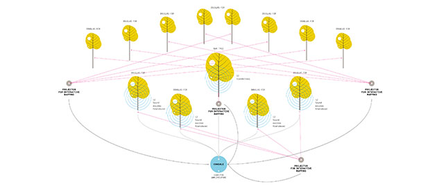 RESONATING TREES, Margaritelli, design Marco Tortoioli Ricci, Francesco Gubbiotti – bcpt associati; sound artist Federico Ortica; collaboratori Nicola Cappelletti (produzione esecutiva); Laboratorio immagine (produzione video); Andrea Marchi (video mapping); Francesco Gubbiotti, Gianluca Sandrone (progetto tipografico); Marco Capaccioni – Sound Studio Service (mixaggio e masterizzazione); Giovanni Testaferri (forestry management); Marco Testadura, Antonio Consoli (forestry consultants); Alberi Maestri, Assisi (treeclimbing). Motivazione: un’iniziativa che sensibilizza l’opinione pubblica sulla vitalità degli alberi attraverso una connessione sonora in grado di comunicare una nuova prospettiva ecosostenibile sulla potenzialità compositiva delle foreste. |