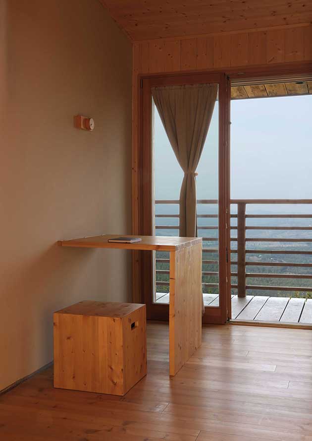 Il progetto comprende cinque unità abitative adibite a foresteria esterna al monastero, destinata agli ospiti occasionali della comunità di Siloe. Inserite nella naturale conformazione del terreno, sono state costruite senza apportare alcuna modifica alla natura circostante, sperimentando una nuova forma di abitare sostenibile. Ogni cellula abitativa, del tutto complementare alla struttura del monastero, è composta da una camera con zona cottura, bagno, balcone sul fronte nord e loggia a sud e soddisfa i requisiti richiesti dalla normativa sulle barriere architettoniche. L’edificio, con struttura portante e tamponamenti in legno, è antisismico, traspirante, ventilato naturalmente e fa uso di materiali naturali interamente riciclabili. La copertura, i solai e le pareti, anch’essi in legno, sono traspiranti e fortemente isolati; il manto di copertura ventilato è in zinco-titanio e il legno a vista è larice lasciato all’ossidazione naturale. In tal modo la foresteria invecchia e si modifica nel tempo, alterandosi in colori e profumi. Il modulo è stato concepito con le maggiori superfici vetrate sul lato nord/ovest al fine di sfruttare la luce diffusa, mentre il prospetto sud è costituito da facciate tamponate con superfici vetrate di minore estensione protette dallo sporto di gronda. Tamponamenti esterni, pavimentazione e serramenti sono tutti in legno di larice lasciato alla sua ossidazione naturale. |