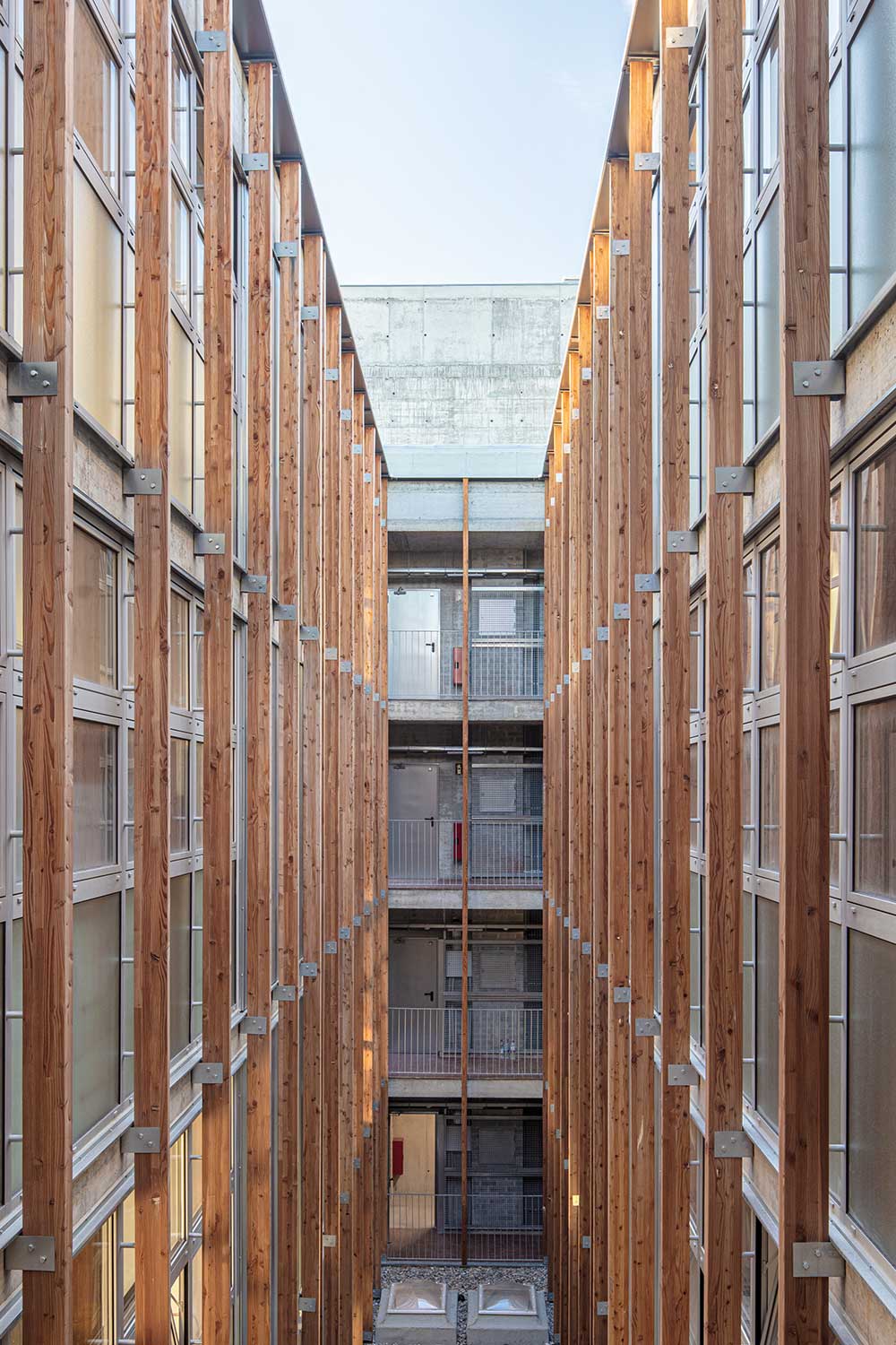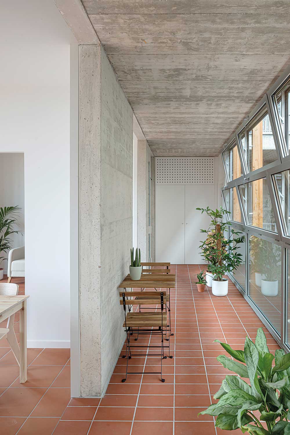 Social Housing 1737 di H Arquitectes è pensato secondo un sistema di aggregazione che massimizza il dialogo tra gli spazi abitativi e l’ambiente. Tutte le camere si affacciano all’esterno, guardando verso il paesaggio. Allo stesso tempo, come se fosse un grande chiostro, questi ambienti racchiudono un atrio centrale dove si concentrano i servizi e la circolazione delle abitazioni.