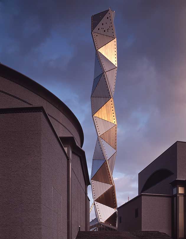 Art Tower Mito,1986-90 Ibaraki, Japan, photo courtesy of Yasuhiro Ishimoto. Commissionata per celebrare il centenario di Mito, Art Tower Mito è un complesso culturale comprendente un teatro, una performance hall e una galleria di arte contemporanea. L’iconica torre tetraelica si ispira alla Torre Infinita di Constantin Brancusi del 1938. Concetto ripreso poi anche nel progetto della torre Allianz a Milano. |