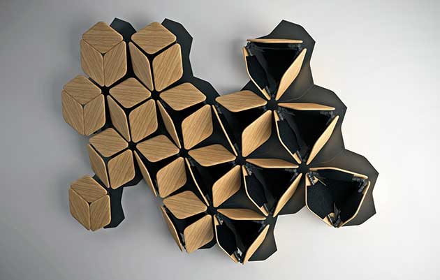 | ADI Design Index 2018 categoria Targa Giovani: Hexatune, progetto IoT di pannelli fonoassorbenti dinamici in legno di rovere, resina melaminica e alluminio, programmazione in Python; tesi di laurea di Walter Scipioni, Università Sapienza di Roma