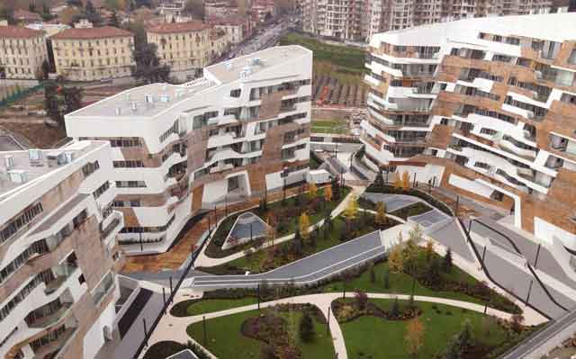 Dev’essere stato emozionante per Zaha Hadid assumere l’incarico dello sviluppo residenziale appena completato nei lotti che occupano la porzione sud-est dell’ex quartiere fieristico milanese. Si trattava di confrontarsi con le architetture di maestri studiati a scuola, da Piero Bottoni a Gio Ponti, da Angelo Mozzoni a Luigi Caccia Dominioni, da Ignazio Gardella a Angelo Mangiarotti, i cui condomini signorili, esempi di stile, caratterizzano la Milano che conosciamo.