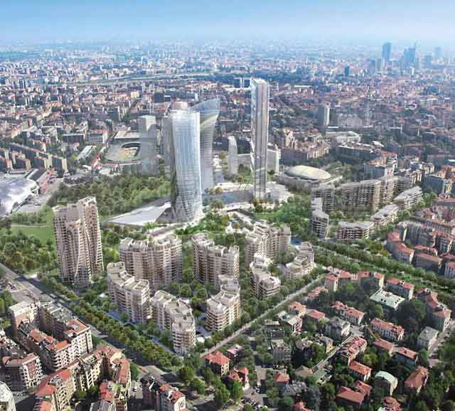 Altri tempi, altri committenti, altre scale, certo. Qui si tratta di un’area di 300mila mq con un mix di funzioni affidata a tre architetti stranieri. La “liberazione” dello sviluppo verticale della città pone da sola questioni mai affrontate in passato, prima tra tutte quella della “quinta” facciata, la copertura, perché i nuovi edifici saranno visti anche dall’alto delle nascenti torri per uffici. E quella della cosiddetta “sostenibilità”. Forse dunque non c’è confronto ma solo naturale evoluzione dell’organismo urbano milanese che per lunghi decenni non dava segni di vita. E che anche per questo oggi stupisce di più.