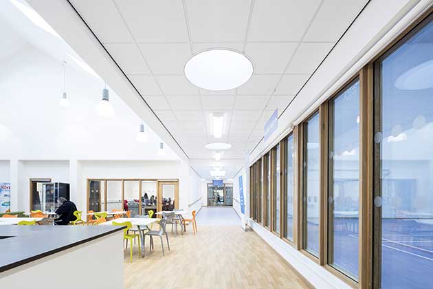 Tisbury Campus, Regno Unito, controsoffitto Armstrong Sierra (foto ©Philip Durrant) |