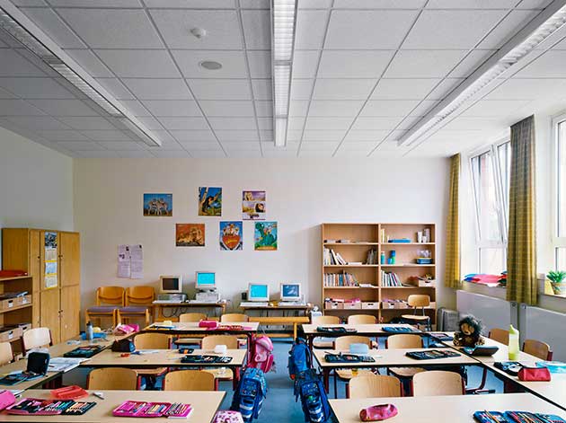 Posto che l’apporto di luce naturale migliora le performance – il che ovviamente è vero non solo in ambito scolastico ma anche sul lavoro – il consiglio degli esperti di Armstrong è quello di combinare controsoffitti minerali di colore bianco, connotati da un elevato livello di riflessione, con ampie finestre o vetrate a tutta altezza, sempre in un’ottica di mantenere il miglior bilanciamento.