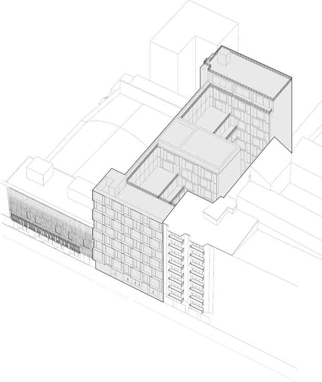 La prima presenza di Dolce&Gabbana in Viale Piave, a poca distanza dal centro di Milano, risale al 2005, con la trasformazione, sempre su progetto di piuarch, del cinema Metropol in spazio polifunzionale utilizzato per eventi e shooting. Ad esso si affianca ora la nuova sede del gruppo della moda, ricavata dalla trasformazione di un edificio esistente. La conformazione lunga e stretta del lotto e la volumetria dell’edificio preesistente hanno portato a una soluzione compositiva sviluppata in tre corpi di fabbrica tra loro paralleli affacciati su una profonda corte interna. Il volume prospiciente il viale e un secondo più arretrato presentano uno sviluppo di sette piani fuori terra, mentre un corpo centrale di tre piani è collegato al resto della costruzione da un sistema di scale e passerelle e risulta sospeso su un altro fabbricato di quattro piani, ortogonale rispetto alla strada e che funge da collegamento tra i tre edifici.