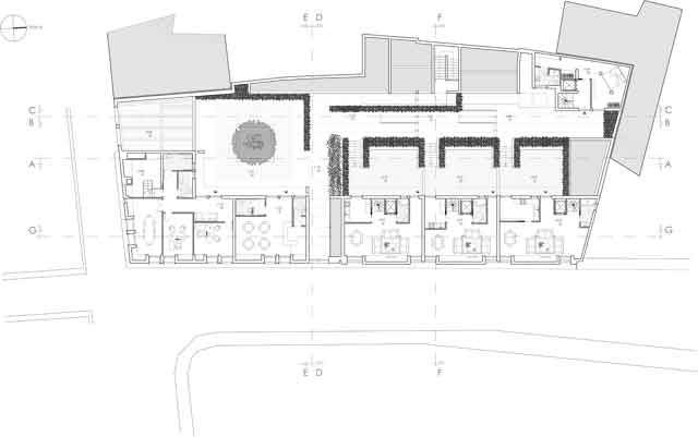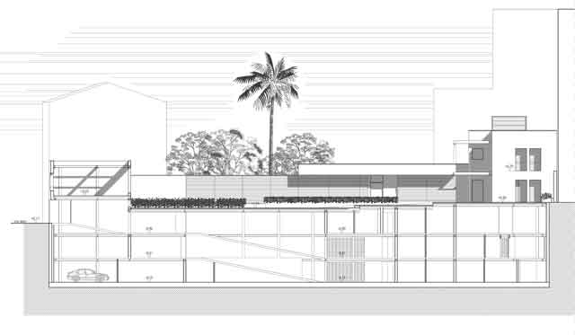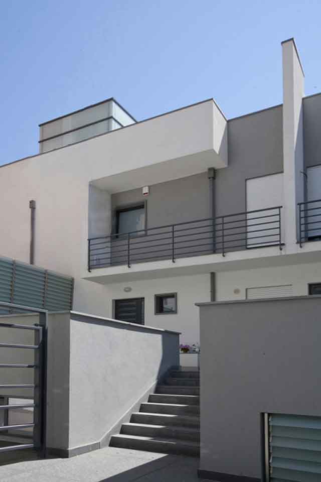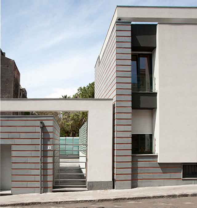 Un nuovo complesso residenziale che si sviluppa ai margini del centro storico di Catania, nei tre piani interrati ospita un sistema di parcheggio di circa sessantacinque posti auto e, per due piani fuori terra, nove alloggi di cui sei duplex, che si erigono sul suolo artificiale della sua copertura. La composizione volumetrica, lungo gli allineamenti stradali e i confini del lotto, disegna una corte interna: un tetto giardino che permette alle residenze di godere di un personale “polmone verde” in città. Il progetto si realizza in un’area urbana già perfettamente configurata e le nuove architetture riusano le volumetrie preesistenti nel lotto sostituendo fatiscenti case terrane dallo scarso pregio architettonico.