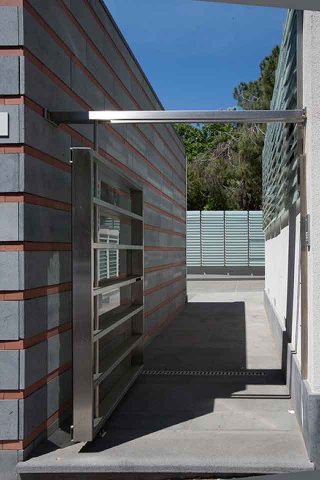 La trave continua in sommità definisce la cornice di chiusura orizzontale, rievocando, in chiave moderna, i canoni compositivi dell’edificato storico (foto © Giusy Pelleriti)