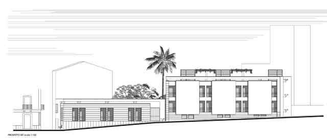 L’uso residenziale accomuna il nuovo complesso abitativo agli edifici circostanti ma la differenziazione linguistica manifesta una dichiarata appartenenza ad una contemporaneità che con le proprie differenze dialoga con le preesistenze storiche e con gli scempi edilizi degli anni Cinquanta, evidenziandone le criticità. Aderente, per giacitura e allineamenti, al tessuto urbano e rispettoso, nelle condizioni altimetriche, delle preesistenze edilizie dell’intorno, l’organismo architettonico si pone quale elemento di transizione nello skyline urbano tra l’orizzontalità della facciata storica e la composizione verticale del costruito risalente agli anni Cinquanta.