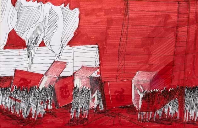Si tratta di una raccolta di venti schizzi progettuali, venti visioni all’interno di uno scenario rosso, che esplorano il rapporto tra luce, ombra, pieni e vuoti, vale a dire degli elementi che stanno alla base del processo progettuale.