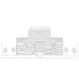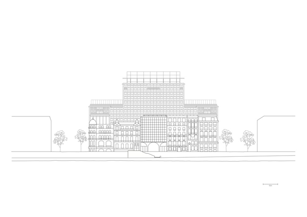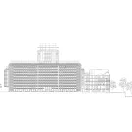 Facciata su Boulevard Morland, dove uno dei nuovi volumi invita i passanti a entrare nella struttura, ph. ©Simon Menges.