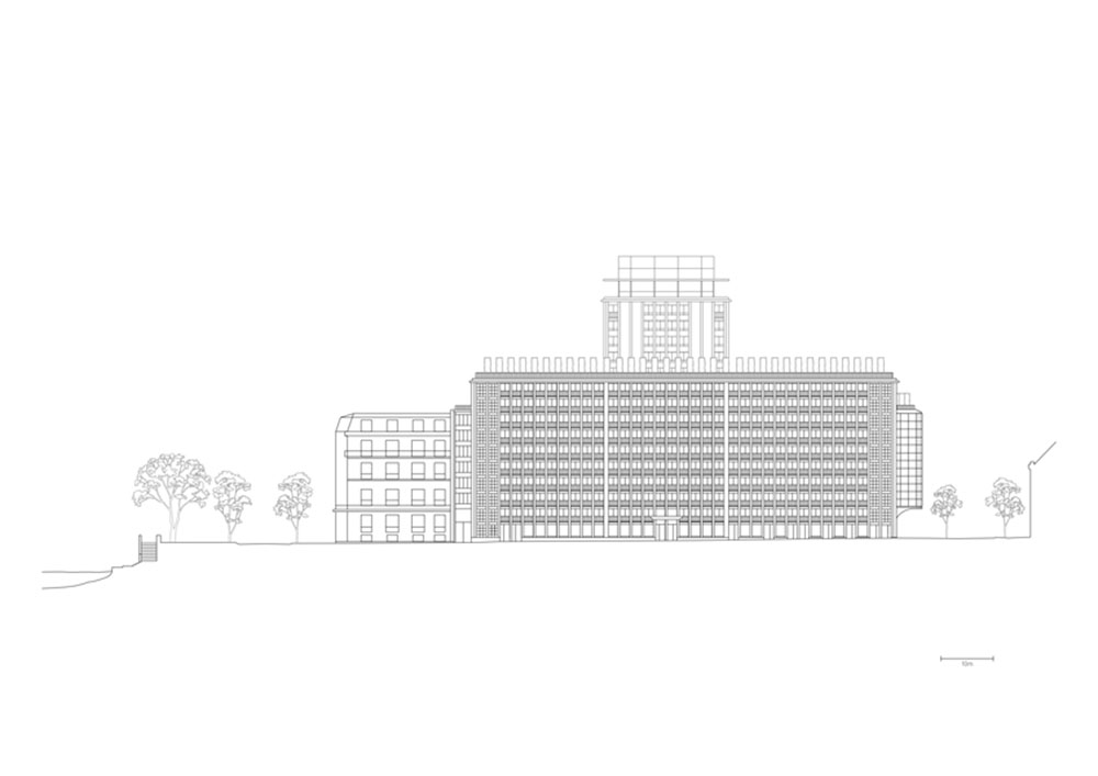 Completato a cavallo degli anni Sessanta su progetto di Albert Laprade, Pierre-Victor Fournier e René Fontaine, il complesso comprendeva originariamente una torre di 16 piani affiancata da due ali di 9 piani. Il progetto lo ha rivitalizzato e trasformato nel nuovo Morland Mixité Capitale nell’ambito del programma Réinventer Paris, che si è concretizzato nella riconversione di edifici pubblici a opera di studi multidisciplinari di architettura, architettura del paesaggio e arte.