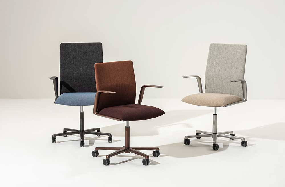 Dal design leggero e minimale, Kinesit Met si distingue per i meccanismi integrati, nascosti con discrezione sotto il sedile. Un supporto lombare invisibile e regolabile, racchiuso all’interno della struttura dello schienale, conferisce ulteriore comfort e flessibilità. Kinesit Met è disponibile sia con schienale basso che medio, completamente rivestito e personalizzabile con un’ampia varietà di tessuti di differenti texture e nuance cromatiche. Base e braccioli in alluminio vengono proposti in finiture metalliche color rame, grigio chiaro oppure antracite.