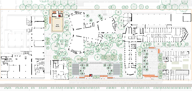 Il Trifoglio sarà interamente ristrutturato. Il nuovo accesso avverrà dal parterre del campus, il piano d’ingresso sarà aperto a formare continuità con i ritrovati spazi aperti. Saranno realizzate le nuove scale di sicurezza esterne e sarà demolita la scala interna, per realizzarne una nuova a prova di fumo.