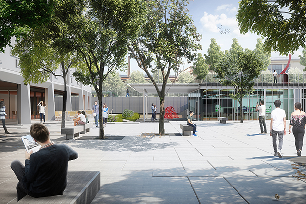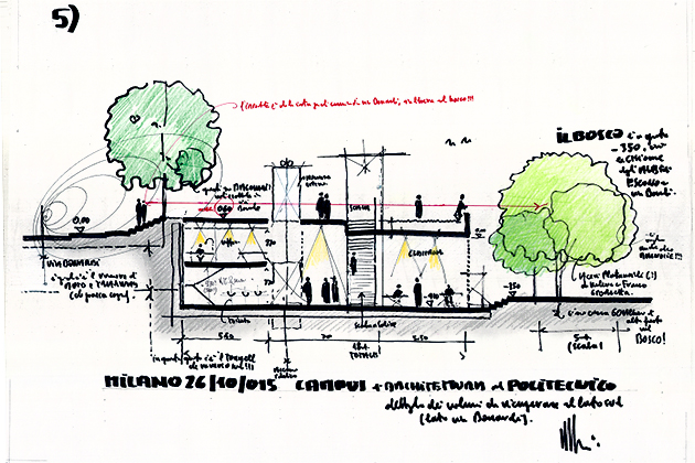 È da questo concept che nascono tre nuove costruzioni: sul lato di via Bonardi sono previsti i due fabbricati destinati a laboratorio modelli e le aule, le cui terrazze, concepite in continuità con la via, diventano luoghi urbani aperti alla città; sul lato di via Ponzio sorgerà l’edificio che ospita le aule; al centro del campus verranno realizzate le piazze coperte del Trifoglio e dei riscoperti pilotis della Nave.