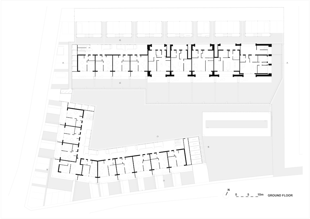 Il ‘vecchio’ comunica e interagisce con il ‘nuovo’ arrivando persino a ospitarlo al proprio interno, mantenendo la dovuta distanza di rispetto che dà luogo a nuovi spazi di filtro. Questi nuovi spazi, che si creano attraverso il dialogo fra volumi, sono stati studiati in modo da rappresentare diverse funzioni e completare la versatilità del complesso residenziale mantenendo una costante: lo stretto rapporto con la natura circostante.