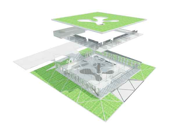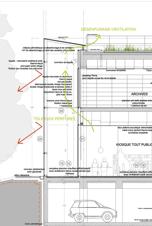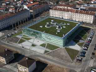 Località Mont-de-Marsan, Francia Committente Communauté d’agglomération du Marsan Architetti Archi5 con B. Huidobro Strutture Mizrahi Ingegneria acustica Tisseyre & Associés Progetto e realizzazione 2007/2012 Superficie totale netta 4.750 mq Parcheggio seminterrato per 80 vettureVETRO, ACCIAIO E SEDUM
