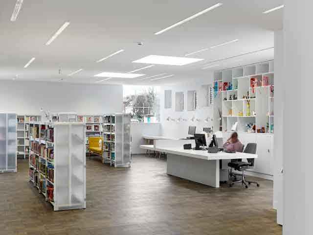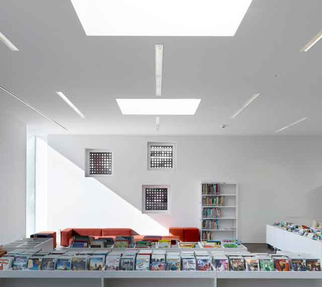 Gli interni della biblioteca sono caratterizzati da grande luminosità, amplificata dall´uso intensivo del bianco (foto ©Lumecore/Toon Grobet)