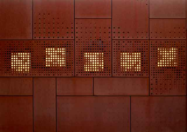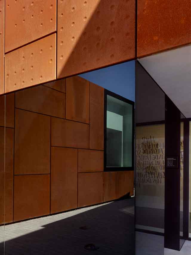 Particolari del rivestimento in acciaio corten e delle aperture vetrate del nuovo edificio (foto ©Lumecore/Toon Grobet)