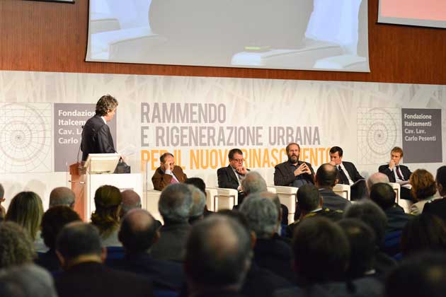 I 400 posti della sala Copernico alla Fiera di Bergamo non sono bastati questa mattina per accogliere il pubblico che ha partecipato all’annuale convegno della Fondazione Italcementi sul tema della rigenerazione e della ricucitura del tessuto urbano.