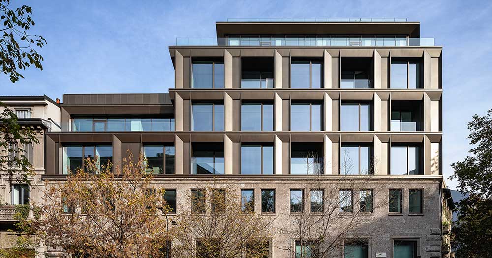 Ne è un esempio il progetto da poco completato in via Melzi D’Eril, una ristrutturazione che modifica l’altezza dell’edificio preesistente portandola a sette piani fuori terra.