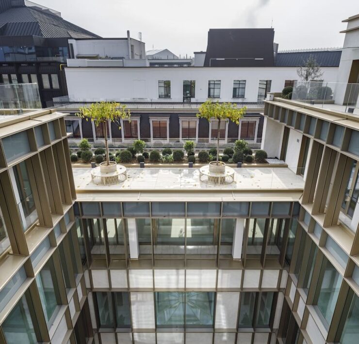 Con le terrazze e i collegamenti che rendono interconnessi i diversi spazi pubblici e privati del complesso, il cortile piantumato assume ora l’aspetto di una piazza europea.