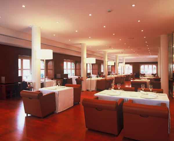 Il progetto architettonico si é protratto nel tempo seguendo le verifiche e perfezionando continuamente i dettagli. Le poltrone in pelle sono state disegnate appositamente: comode come divani e funzionali come sedie. I tavoli sono stati modificati negli anni per raggiungere le dimensioni piú appropriate. Il parquet é stato virato fin dall´inizio per meglio integrarsi con il colore storico di questi ambienti.