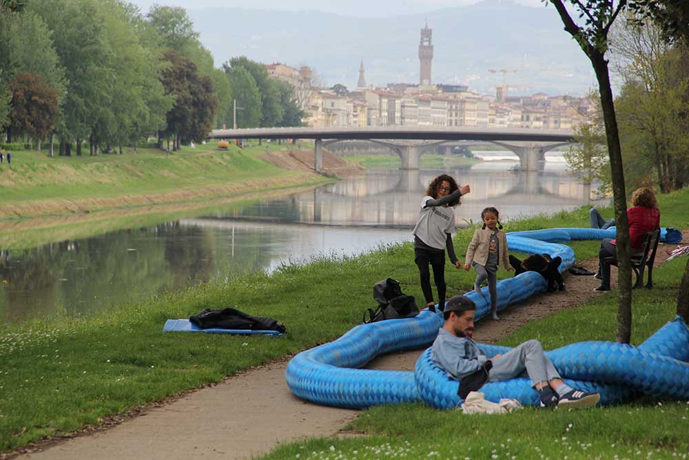 Elemento d’arredo o oggetto d’arte? Creato nel 2018 come ‘scultura sociale’ itinerante, questa corda (rope) di 30 centimetri di diametro lunga 60 metri creata dal visual artist belga Ief Spincemaille è stata sulle spiagge di Ostenda, nel centro storico di Firenze, stesa sui tappeti di una moschea in Belgio, sempre come elemento di coinvolgimento di una comunità e modo colorato e originale di fruizione collettiva dello spazio pubblico.
