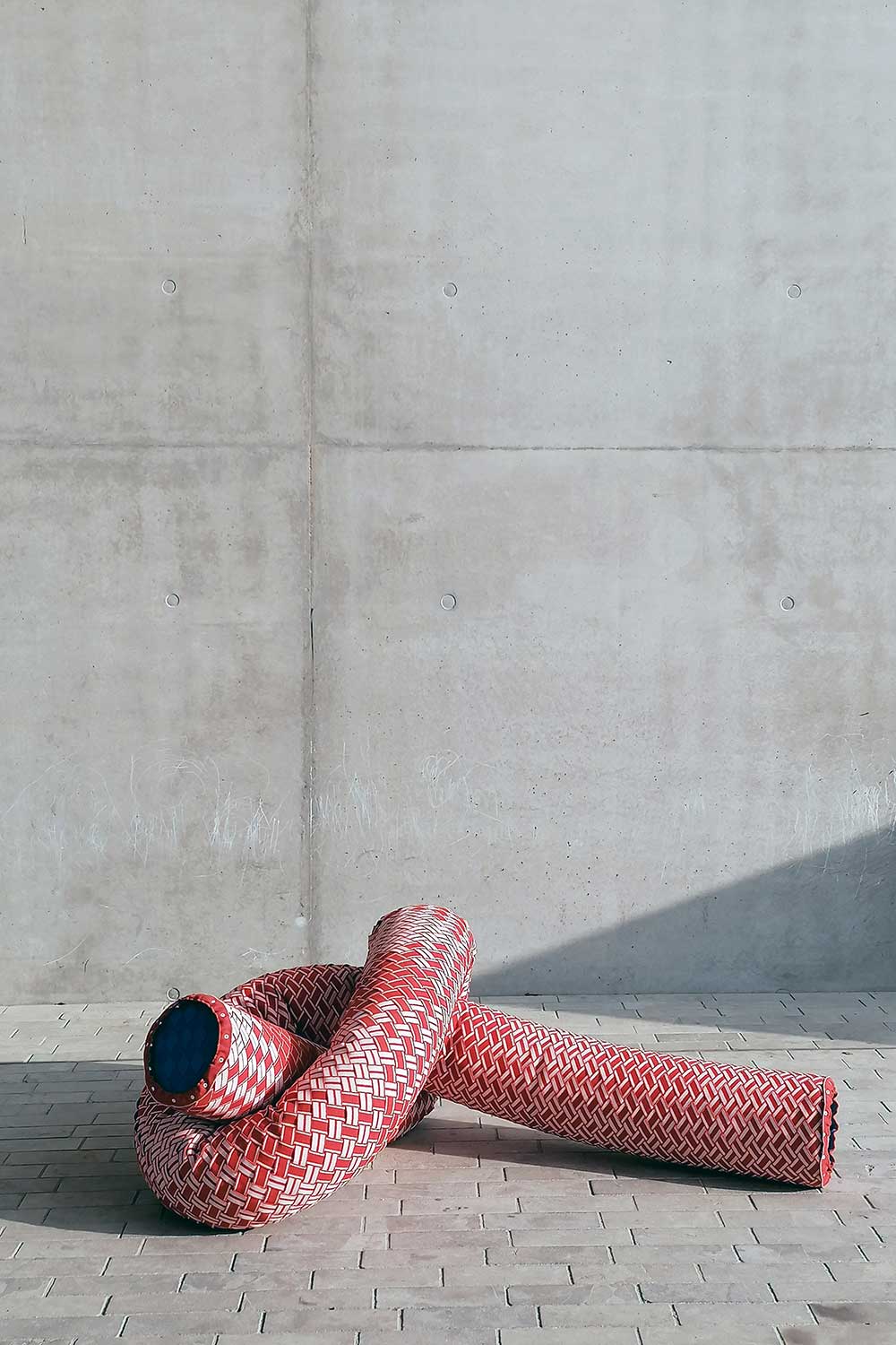 Progettato da Ief Spincemaille con la collaborazione della textile designer Esther van Schuylenbergh, Rope 6M è intrecciato a mano nell’atelier del visual artist con tessuto prodotto da una società belga.
