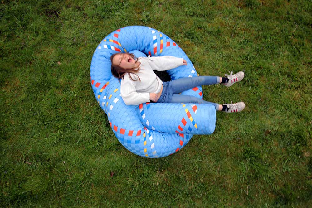 La fruizione di Rope è unica, a metà tra sedersi e sdraiarsi, e questo dà luogo a modalità del tutto nuove di stare insieme. Quando una persona si alza o si sposta Rope si riconfigura, e questo agisce anche sullo stato degli altri, creando una coreografia dinamica dell’incontro.