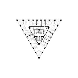 La forma insolita regala agli appartamenti ampie viste sulla città e sull’acqua. Agli angoli del prisma triangolare si trovano generose logge di 15 metri quadrati, pensate come un prolungamento dello spazio abitativo. L’inedita forma inoltre migliora l’esposizione delle tre sole facciate alla luce solare.