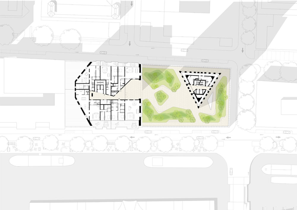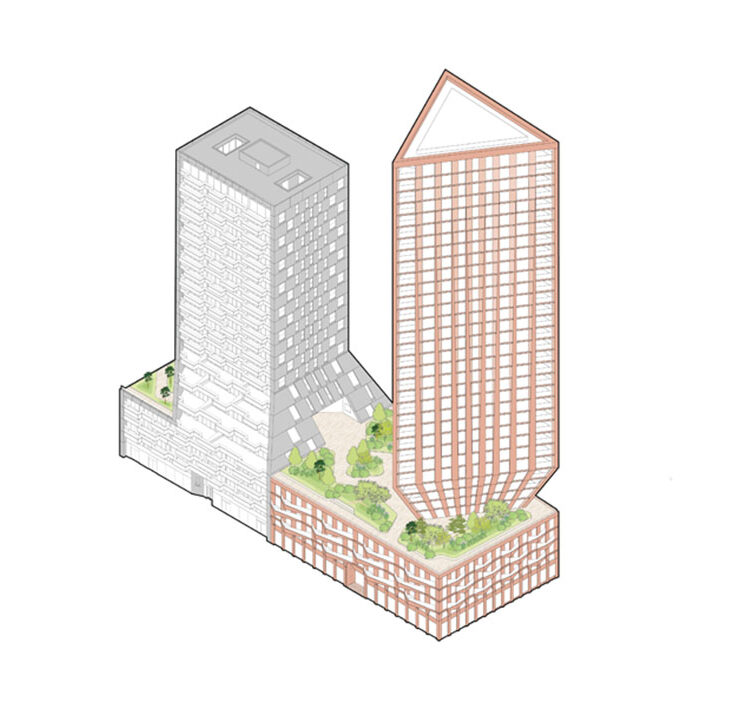 I progettisti dello studio di Rotterdam hanno molto riflettuto sui comportamenti e sul rischio di solitudine di chi vive nei grattacieli; è stata posta una particolare attenzione alle aree comuni e agli spazi di incontro diversi dall’atrio o dall’ascensore.