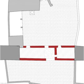 L’intimità della casa scomparsa che un intervento minimo trasforma nel suo opposto: una piazza interna racchiusa da alti muri e dedicata alla divulgazione e alla valorizzazione dei prodotti locali.