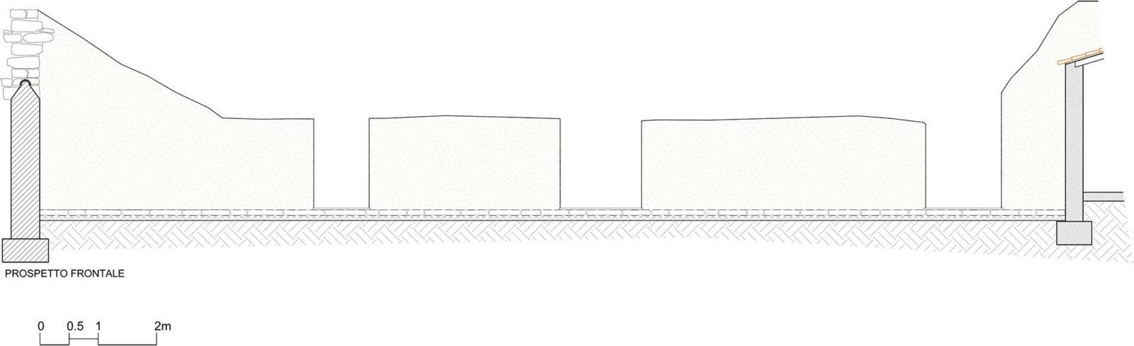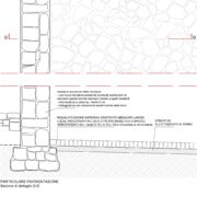 Ripuliti, messo in sicurezza, intonacati e tinteggiati con materiali ecologici a base di calce, gli elementi verticali del rudere diventano così elementi fantasmatici, simulacri dell’abitazione che fu, a fare da quinta alla nuova funzione espositiva affidata essenzialmente alle superfici orizzontali.