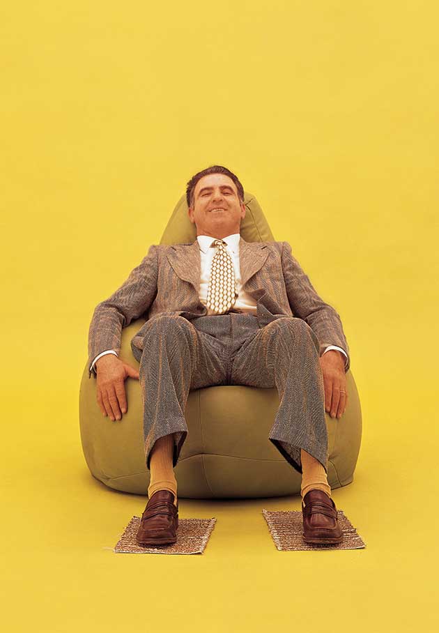 Aurelio Zanotta sulla poltrona Sacco negli anni Sessanta |