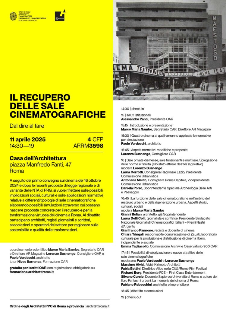 Salvare le sale cinematografiche, un convegno all’Ordine degli Architetti di Roma