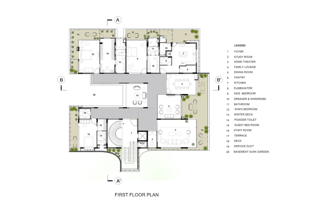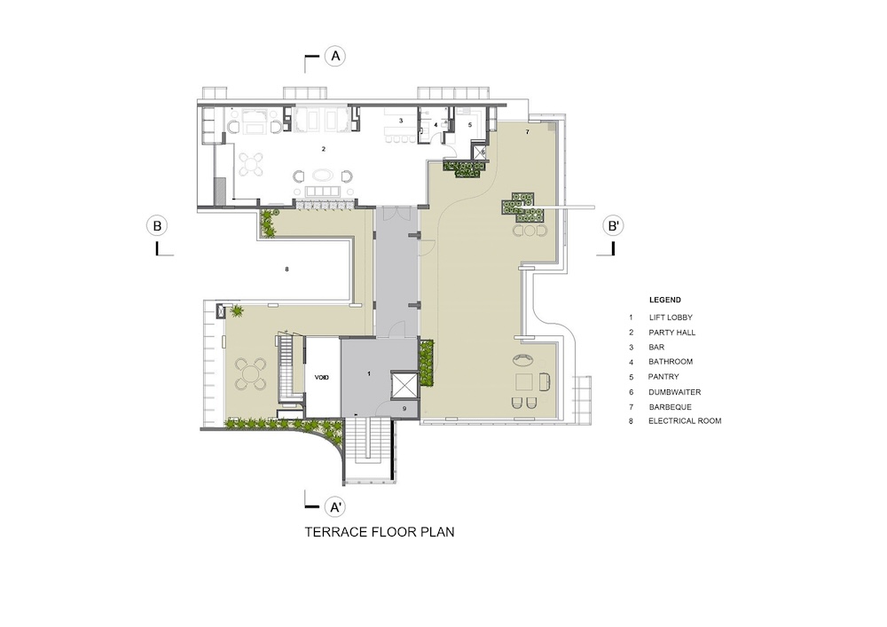 Sanjay Puri Architects ha cercato di creare esperienze spaziali interconnesse mantenendo allo stesso tempo un senso di privacy all’interno di ciascuna area. Diversi livelli di trasparenza caratterizzano le aree interne, bilanciando armoniosamente gli spazi abitativi.