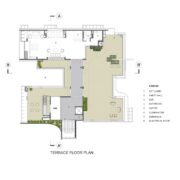 Il secondo piano dispone di una sala polivalente che si apre su un ampio terrazzo esposto a nord.