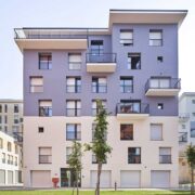 Per mitigare il calore estivo e allo stesso tempo garantire privacy e ridurre il rumore proveniente dalle arterie stradali, le facciate sono composte da una serie di schermi di cemento Gfrc (acronimo di Glass Fiber Reinforced Concrete) che rivestono i lati est, ovest e sud, con il lato nord più aperto.