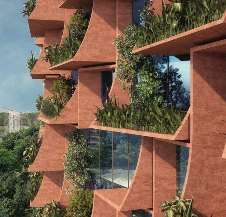 Attenta all’ambiente e inserita nel paesaggio, l’architettura di Zen Spaces sfuma i confini tra interni ed esterni. Un’intricata facciata schermante definisce un diverso concetto di trasparenza, componendo giochi di ombre e luci e dando vita a insolite connessioni visive con lo scenario circostante.