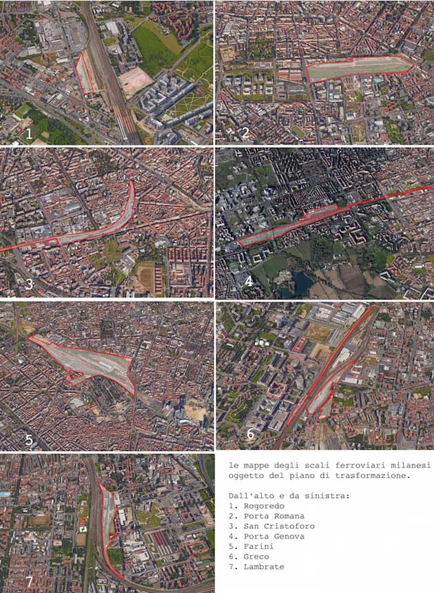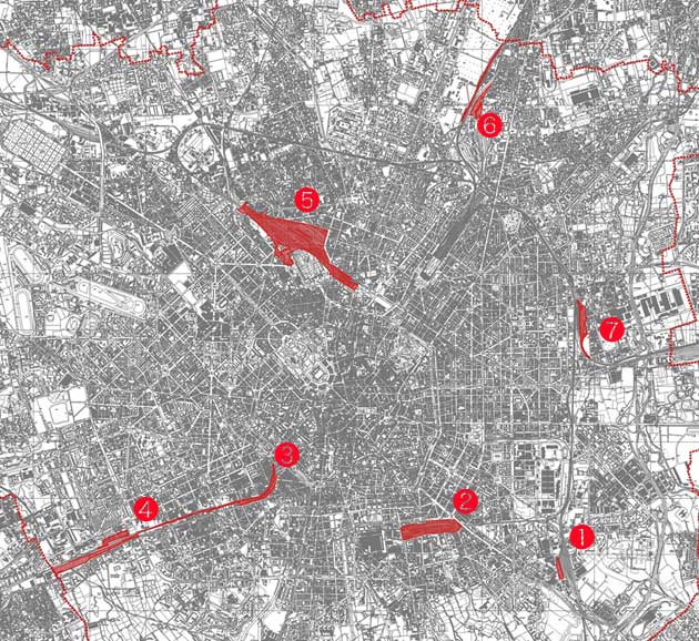 I sette scali ferroviari dismessi sono localizzati lungo la cintura ferroviaria, il passante ferroviario e alcune direttrici in uscita da Milano e sono caratterizzati da un’elevata accessibilità.