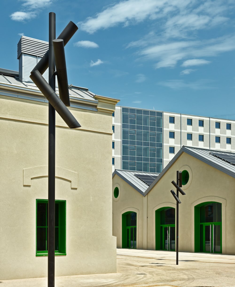 Le sei nuove palazzine residenziali si integrano con due edifici storici riqualificati e si aprono a 40.000 metri quadrati di aree pubbliche e verdi.