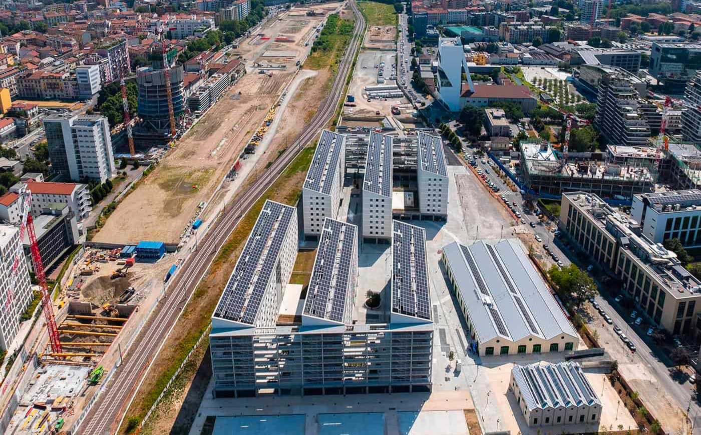 Il Villaggio è il primo tassello del progetto di rigenerazione urbana nell’ex scalo di Porta Romana guidato da Coima, che da snodo ferroviario si trasforma in un nuovo progettato per accogliere gli studenti, 2.000 residenti tra edilizia libera, convenzionata e pubblica, 6.000 lavoratori e con oltre 20 spazi per attività commerciali e servizi di prossimità al piano terra del nuovo complesso.
