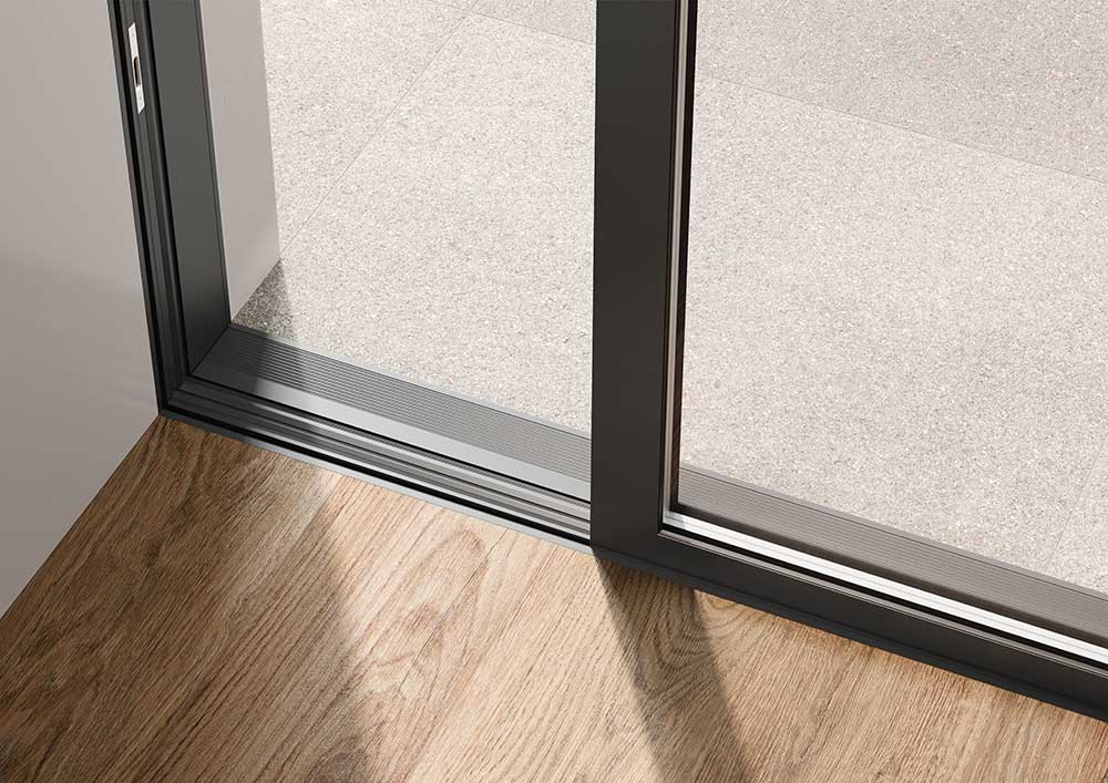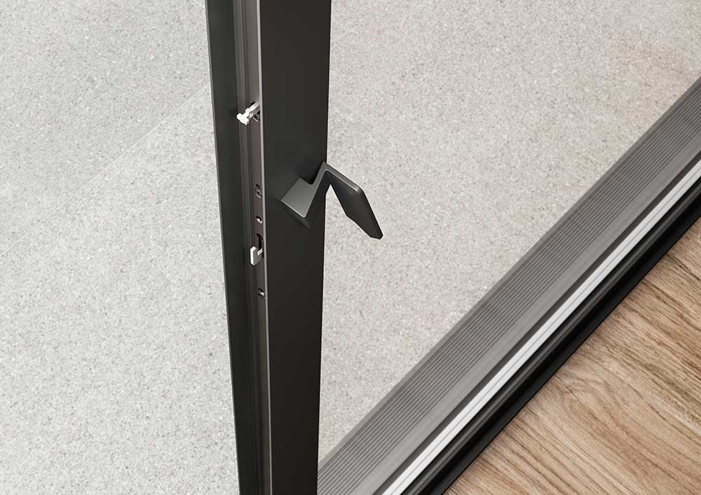In particolare, il montante centrale di soli 32 mm esalta l’estetica minimale del prodotto e contribuisce a creare un’eccellente continuità visiva tra interno ed esterno. La soglia piana “0-Level” inoltre elimina le barriere architettoniche: si tratta di una soglia a filo pavimento che elimina ogni rischio d’inciampo garantendo un accesso agevolato a qualsiasi utente.