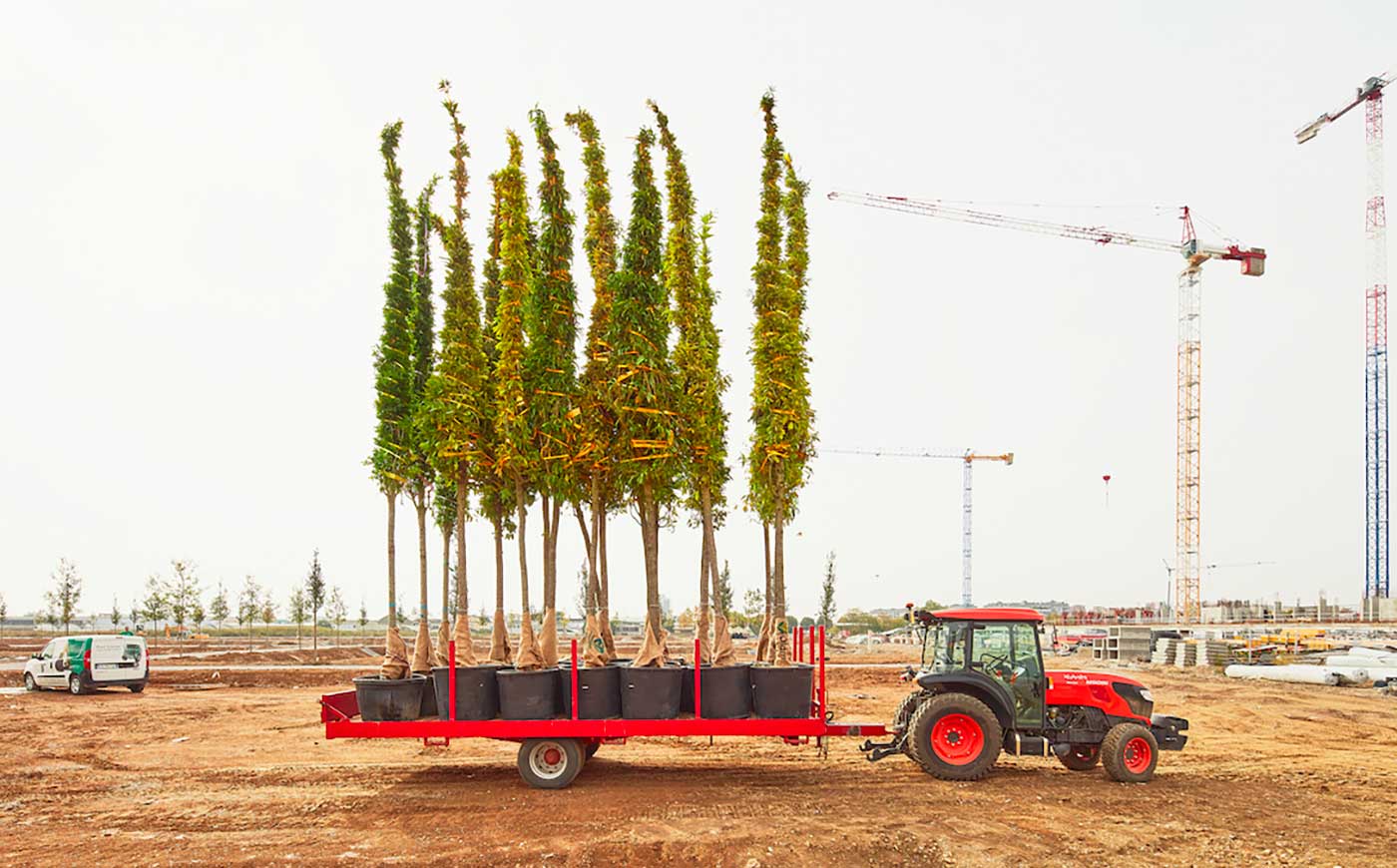 Il nuovo parco pubblico – sempre aperto e non recintato – è stato progettato da Michel Desvigne Paysagiste, che si è ispirato alla rete agricola tipica della pianura padana, trasponendone all’interno del parco la trama geometrica e ricomponendo gli elementi identitari del paesaggio rurale in un susseguirsi di corsi d’acqua, rogge, filari alberati, orti e frutteti urbani, insieme a piante ad elevato assorbimento di CO2.